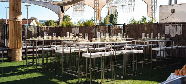 Der stilvoll gestaltete Außenbereich mit eigener Outdoor-Bar bietet die ideale Kulisse für unvergessliche Sommerfeste in entspannter Atmosphäre und sorgt mit kühlen Cocktails, frisch gezapftem Bier und spritzigen Drinks für echtes Urlaubsfeeling. Flexibel gestaltbar – ob mit Sitzgelegenheiten für ein gemütliches Dinner oder Stehtischen für lockere Gespräche – wird die grüne Oase am Kesselhaus zu einem einzigartigen Highlight jedes Events.