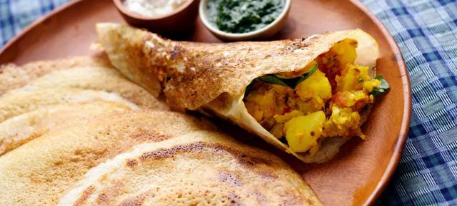 * Indischer Dosa (herzhafte Pfannkuchen aus Linsen und Reis)