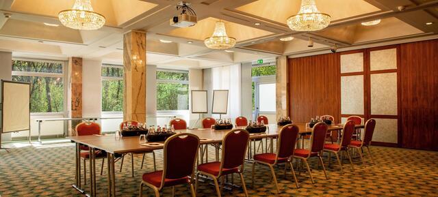 * Tagungsraum mit Konferenztechnik (Flipchart, Metaplanwand, Leinwand und Beamer)