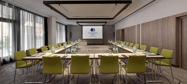 Die Tagungspauschale beinhaltet die Raummiete inklusive technischer Basisausstattung mit einem Flipchart, einer Leinwand, einer Pinnwand sowie einem Beamer mit 6.000 ANSI-Lumen oder alternativ einem Präsentationsbildschirm. Zusätzlich stehen Blöcke und Stifte für alle Teilnehmenden bereit.
