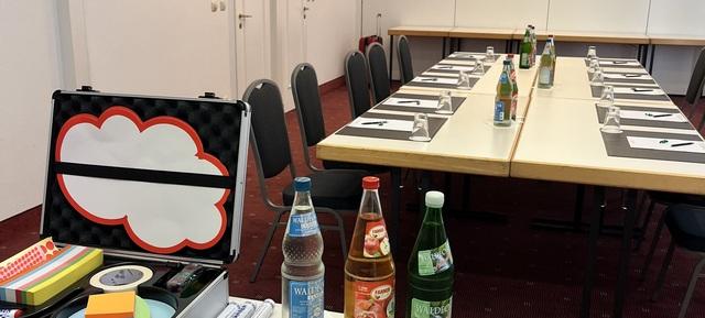 * Standard-Tagungstechnik: Beamer, Leinwand, Flipchart, Pinnwand & Moderationskoffer