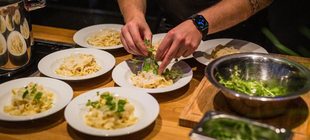 Zu Beginn wird ein Glas Prosecco oder eine alkoholfreie Alternative serviert und dabei wird ein kurzer Einblick in den Ablauf sowie in die Rezepte des Abends gegeben. Anschließend heißt es: Schürze umbinden, Zutaten vorbereiten und gemeinsam loskochen. Schritt für Schritt entstehen die einzelnen Gänge, begleitet von Tipps und Tricks aus der Profiküche. Zum Abschluss genießen Sie das Menü zusammen am großen Tisch – ein Abend voller Genuss, Freude und guter Gespräche.