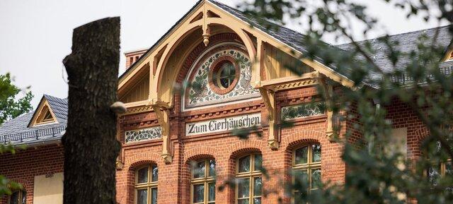 Das Eierhäuschen bietet Innenräume wie das historische ehemalige Tanzlokal sowie einen modernen Erweiterungsbau, verbunden durch einen Glastunnel mit lichtdurchfluteter Küche und Bäckerei. Der Biergarten mit Möglichkeit für Outdoor-Events ergänzt die Veranstaltungsflächen. Diese Kombination ermöglicht Firmen, Indoor-Formate mit Außenbereichen zu verschränken und flexibel auf Teilnehmerzahlen zu reagieren.