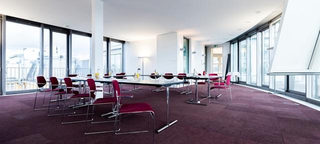 Das Convention-Center bietet moderne, lichtdurchflutete Räume inklusive umlaufender Terrasse über den Dächern Berlins. Professionelle Betreuung, diskreter Service und ausgefallene Buffets schaffen den perfekten Rahmen für Ihre erfolgreiche Veranstaltung. Ob Tagung, Produktpräsentation, Fotoshooting, Abendessen oder private Feierlichkeiten - der einmalige Ausblick auf die Wahrzeichen Berlins macht Ihre Veranstaltung zu einem Highlight für Ihre Gäste. Das Convention-Center umfasst zwei Veranstaltungsräume mit 57 m² sowie 101 m² sowie ein Foyer, das für Kaffeepausen oder als Aufenthaltsraum genutzt werden kann.