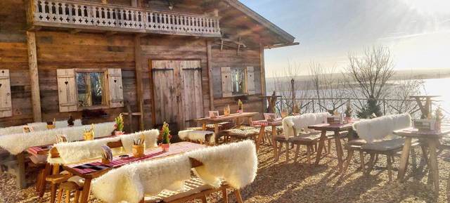 Hoch über den Dächern Hamburgs bietet die Hauseralm Süllberg viel Platz für bis zu 160 Personen und einen einzigartigen Panorama-Blick über das Blankeneser Treppenviertel und die Elbe. Die Hauseralm kann von Oktober bis März gemietet werden.