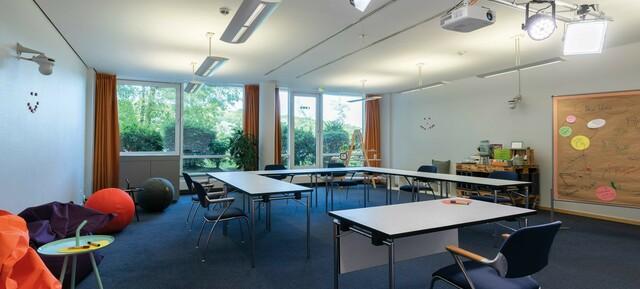 Flexible Möbelkonzepte, moderne Technik und spezielle Kreativräume wie das Rhetorikstudio schaffen optimale Bedingungen für agile Formate, Design Thinking, Kommunikationstrainings oder kollaborative Workshops. Die Räume lassen sich kombinieren oder abtrennen – ideale Voraussetzungen für Gruppenarbeit, Breakouts oder vertrauliche Sitzungen. Tageslicht, ruhige Atmosphäre und Zugang zur Außenterrasse fördern konzentriertes Denken und kreative Impulse.
